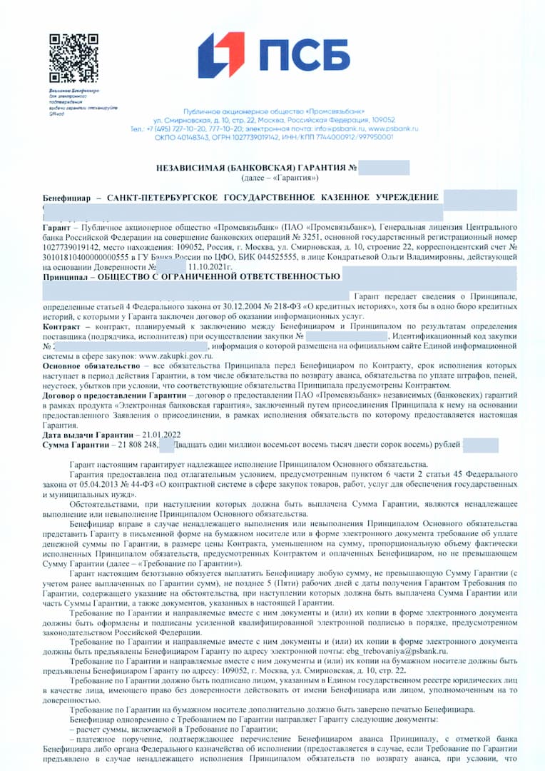 Мы работаем с 60 банками, одобренными Министерством финансов и являемся их официальными партнерами. Все гарантии подлежать обязательному внесению в реестр банковских гарантий.